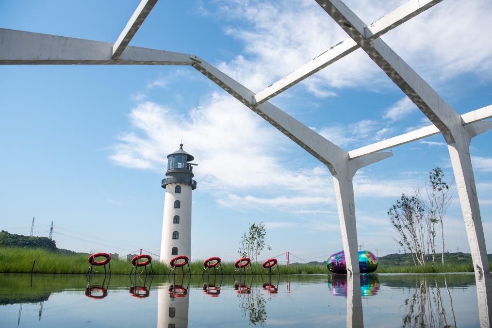 滨江公园灯塔广场一角。新华社记者伍志尊 摄