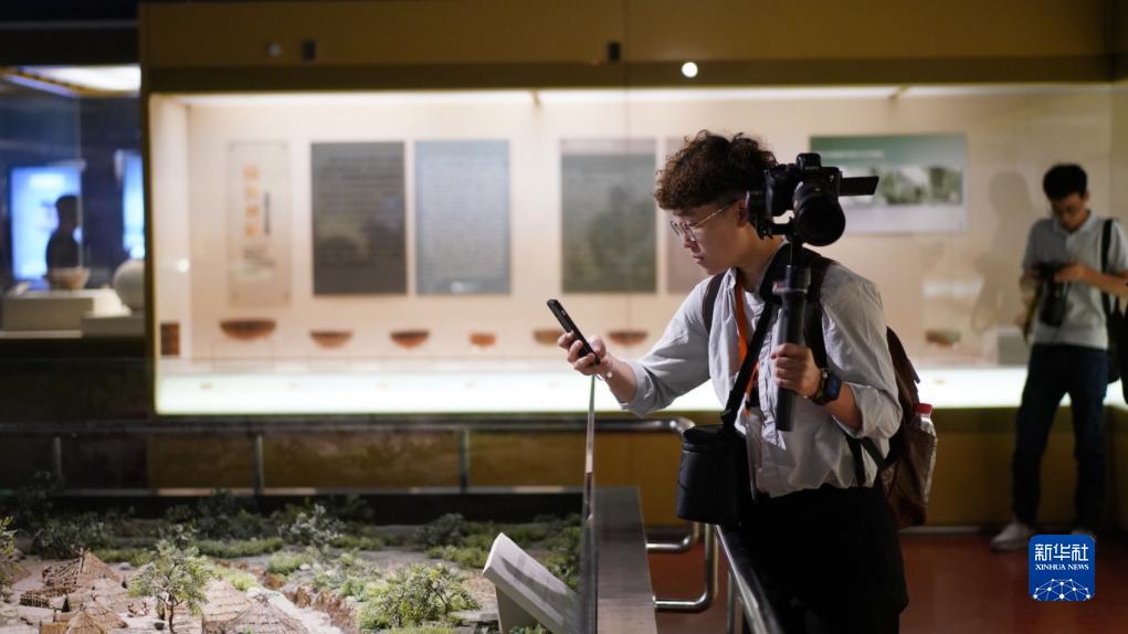 7月17日,李宣在甘肃省博物馆参观。新华社记者 黄扬 摄