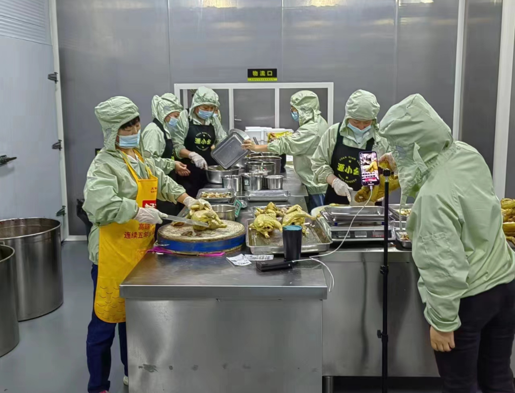 “去年入驻产业园后,我们的生产工艺更规范化了。园区有良好的电商配套,大幅提高我们的销量,2022年实现销售额1600万元。现在年需求量达10万多只鸡,我们建起了养殖场。” 源源食品负责人潘方容说。