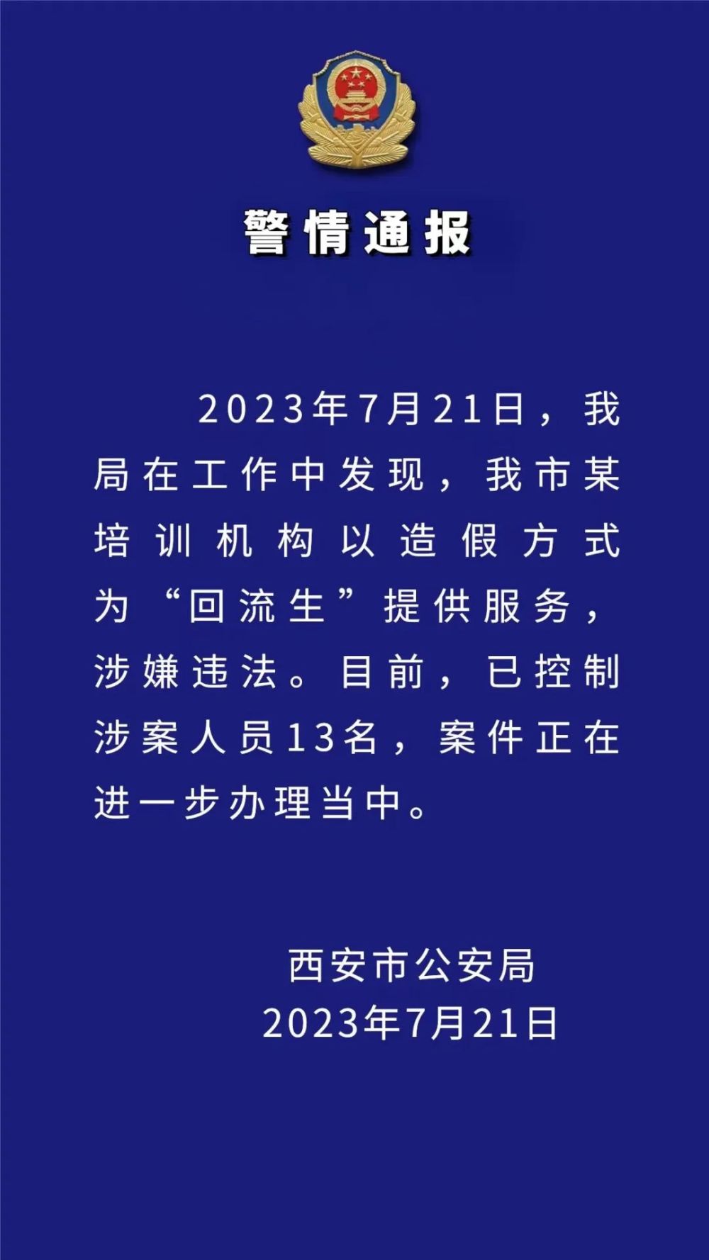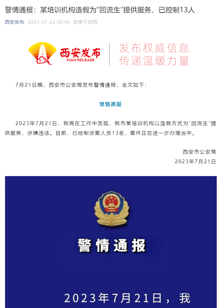 警情通报:某培训机构造假为“回流生”提供服务,已控制13人