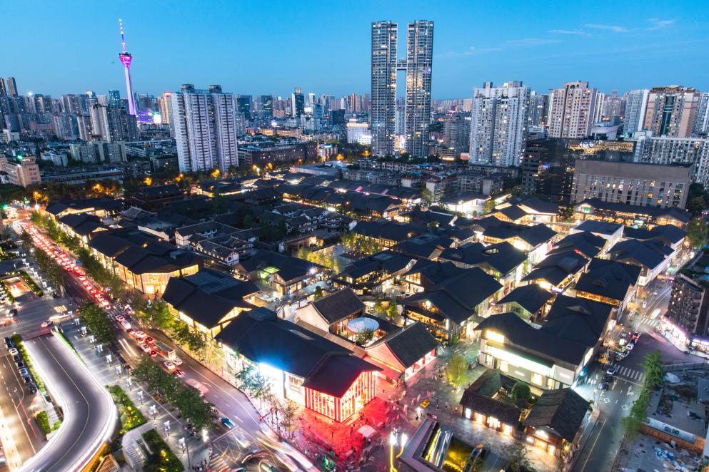 现如今,这里依然是成都最繁盛热闹的地方。春熙路商圈人头攒动,环抱大慈寺,成都国际金融中心、太古里等时尚弄潮儿云集,国际品牌、各类首店入驻率居成都首位,是成都对外开放最前沿、外商投资的首选地。
