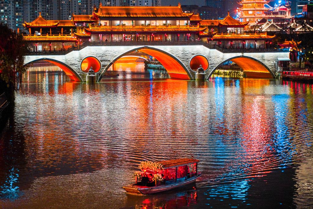 成都“新十二月市”、“夜游锦江”等特色消费示范场景在社交平台屡屡登上热榜,据了解,仅“夜游锦江”上半年就累计接待游客134万人次。