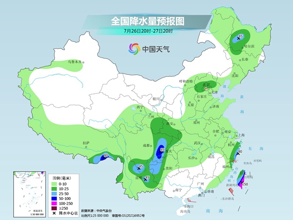 24-26日,四川、重庆、贵州、云南北部等地有中到大雨,四川南部、重庆南部、贵州北部等地部分地区暴雨,局地大暴雨,过程累计20~50毫米,部分60~120毫米,局地150~200毫米;同时由于这一带能量以及水汽条件都比较好,短时强降雨特征明显,小时雨强可达30~50毫米,局地60毫米以上,并伴有雷暴大风等强对流天气。
