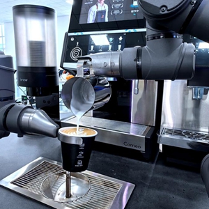 在液晶操作屏上选好一款咖啡,机械臂自动开始工作,取杯、磨豆、萃取、打奶泡、拉花一气呵成,“手法”娴熟——在位于山东淄博临淄区的遨博(山东)智能机器人有限公司,智能协作机器人不仅可以制作咖啡、按摩理疗,还可以用于辅助工业生产,重复定位精度极高。