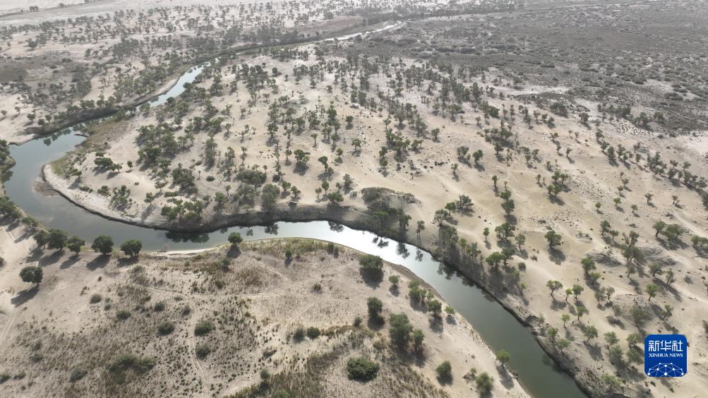 这是8月2日拍摄的塔里木河下游景色(无人机照片)。新华社发(王傲 摄)