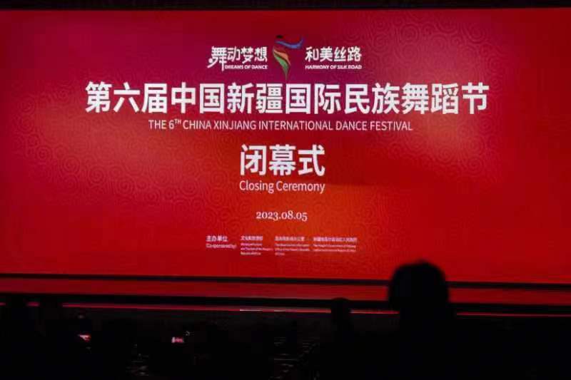 8月5日晚,第六届中国新疆国际民族舞蹈节闭幕式会场。新华社记者 胡虎虎 摄