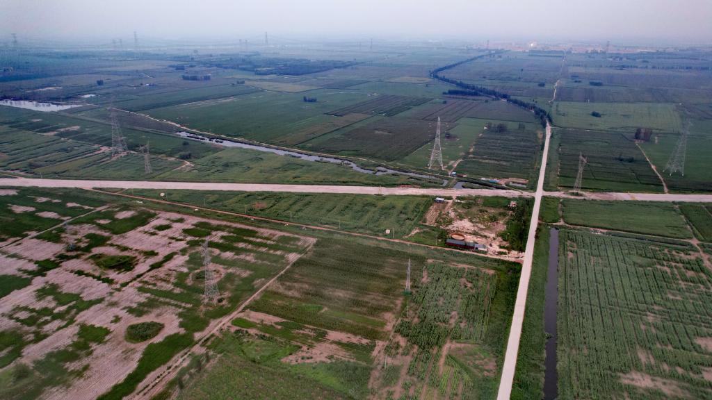 洪水到达之前天津静海区台头镇所在的东淀蓄滞洪区。新华社记者 刘诗平 摄