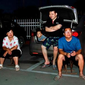 8月6日,平原县王打卦镇群众在户外有序避险。新华社记者 郭绪雷 摄