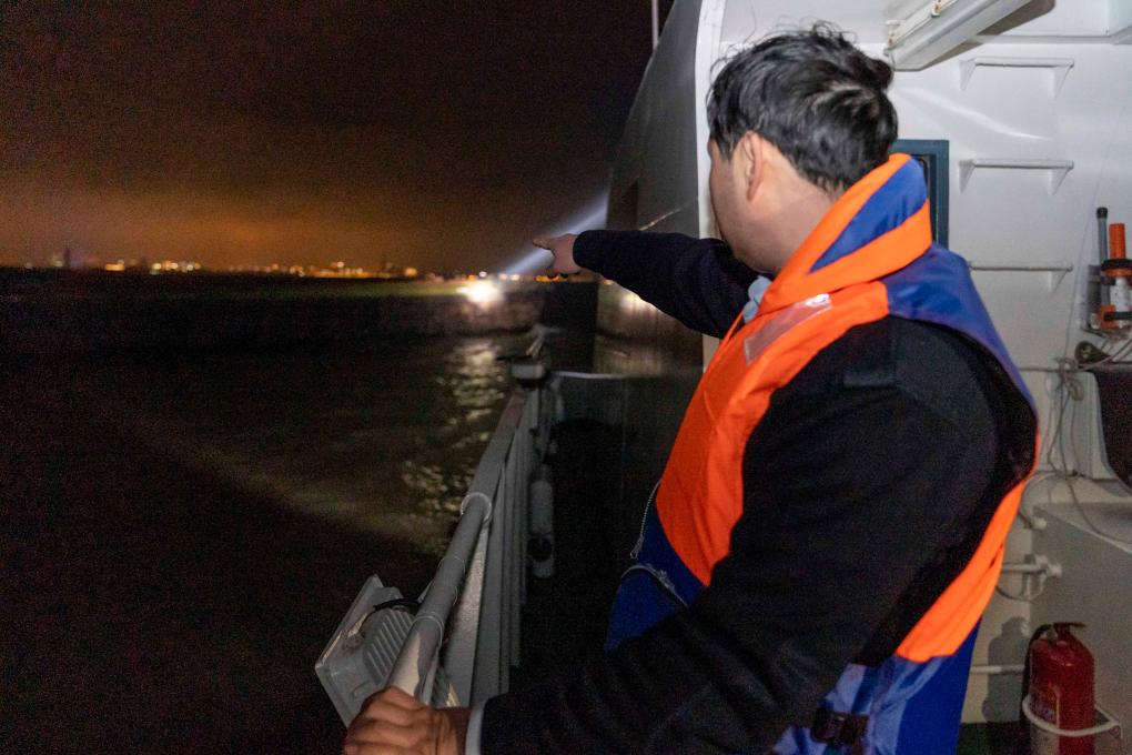 记者近期夜间行船在长江上海段,能明显感受到严打非法采砂带来的变化。2021年之前随执法人员夜间执法时,盗砂船徘徊在敏感水域伺机偷砂,现在江平岸阔已难觅盗砂船踪影。