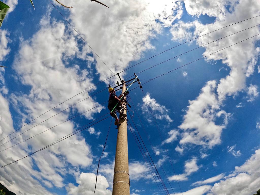 8月5日,电力抢修人员在进行作业。(王润泽 摄)
