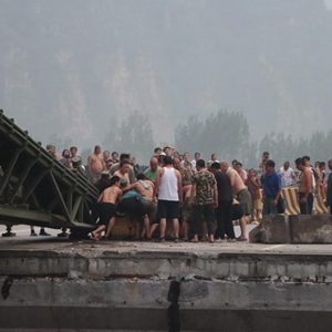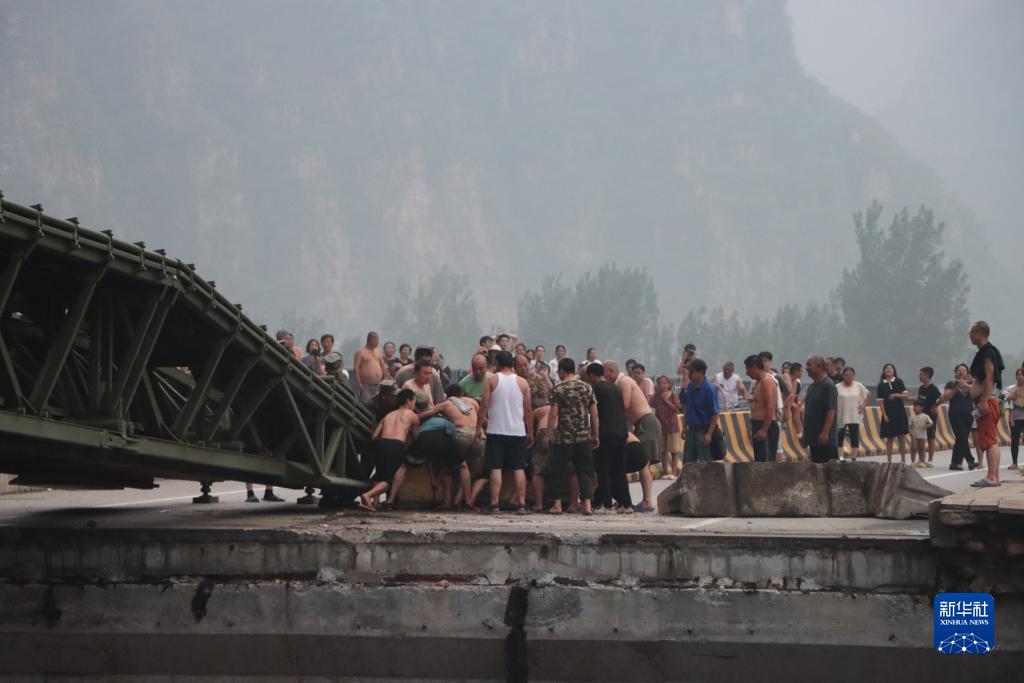 汛情发生后,四渡桥断裂散落在拒马河下游,通往山区各村镇的“生命通道”被切断。