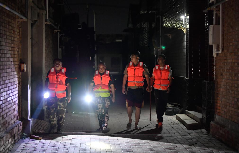 除了要时刻关注洪水情况,还要防止在洪水过境时持续降雨造成村里内涝。“大家分工协作,分批巡逻,有状况随时上报。”从8月4日洪水水头抵达台头镇,郝桂文和坚守在村内的村民就几乎没睡过整觉。