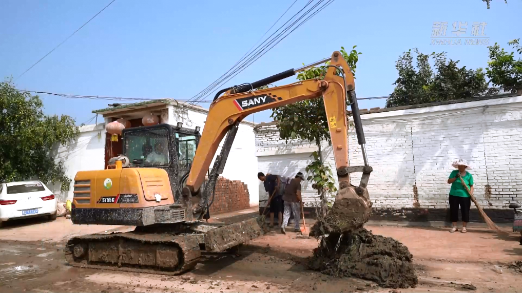 8月8日,在宁晋县河渠镇河渠村,街道清淤已经进入尾声。