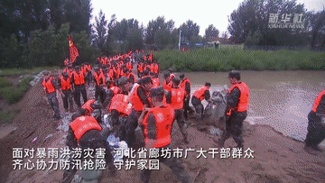 面对暴雨洪涝灾害,河北省廊坊市广大干部群众齐心协力防汛抢险,守护家园,社会各界人士纷纷伸出援手,奉献爱心,汇聚了温暖人心的正能量。