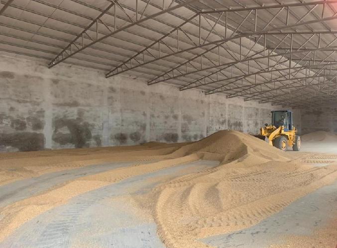 装载机在刘金月的粮仓里装载粮食。(受访者供图)