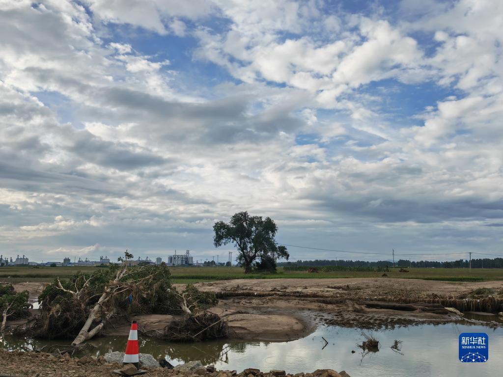 8月10日在黑龙江省五常市拍摄的一处洪水中受损的土地。新华社记者 杨思琪 摄