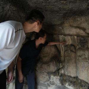 邯郸市峰峰矿区文物保护人员在水浴寺石窟查看文物受损情况。(受访者供图)