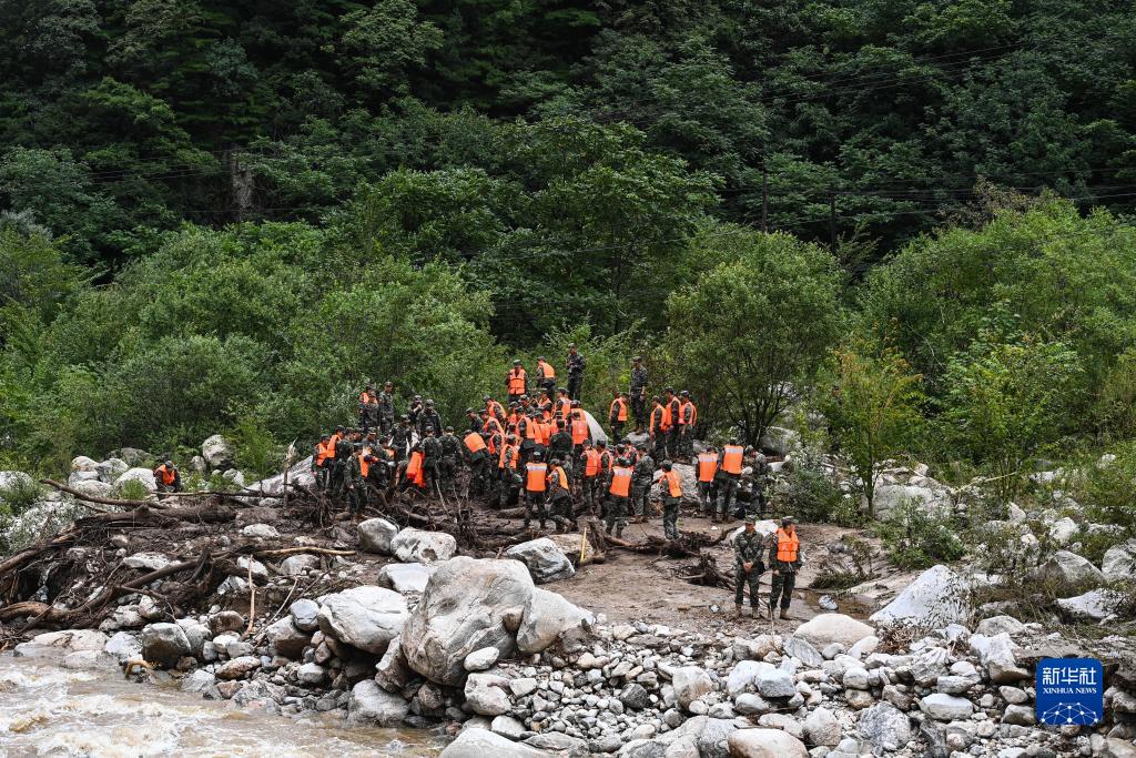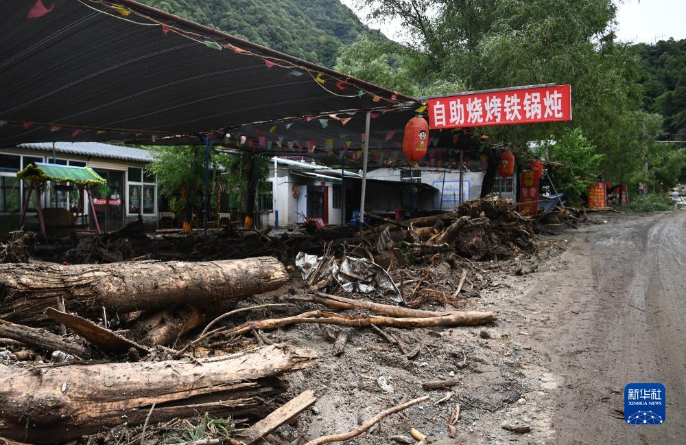 这是8月12日拍摄的西安市长安区滦镇街道喂子坪村鸡窝子组山洪泥石流灾害现场。新华社记者 邹竞一 摄