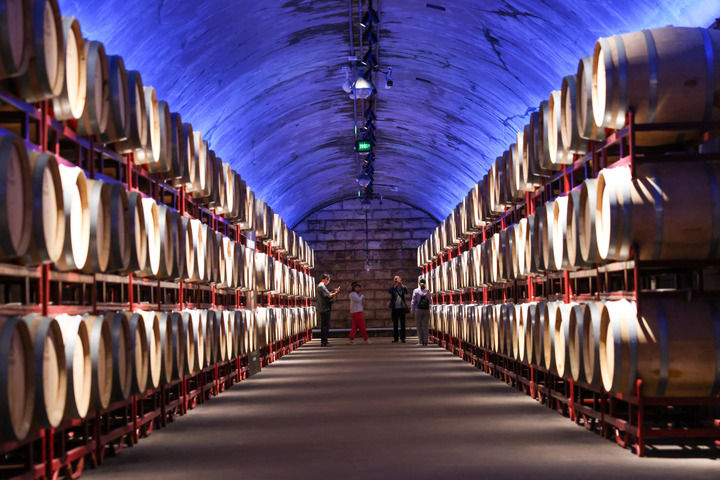 游客在张裕酒文化博物馆内参观已有百年历史的地下酒窖(2023年6月12日摄)。新华社记者 朱峥 摄