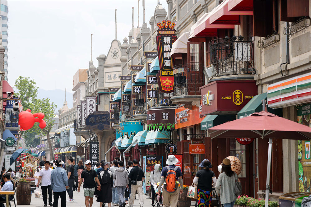 游人在烟台市朝阳街游玩(2023年6月12日摄)。新华社记者 朱峥 摄