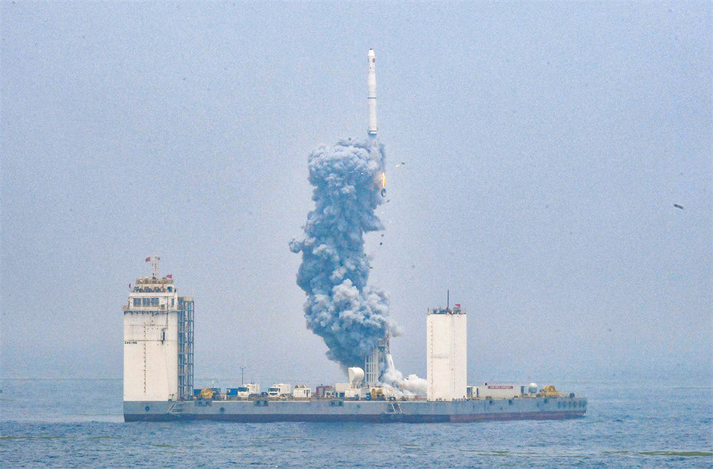 以烟台海阳港为发射母港,我国首次固体运载火箭海上发射取得成功(2019年6月5日摄)。新华社记者 朱峥 摄