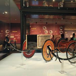 这些车舆依据张家川县马家塬遗址出土的车辆遗迹复制。马家塬遗址是一处战国晚期的西戎贵族墓地,共出土车辆遗迹69辆,随葬品3600多件(套),2021年入选中国“百年百大考古发现”。