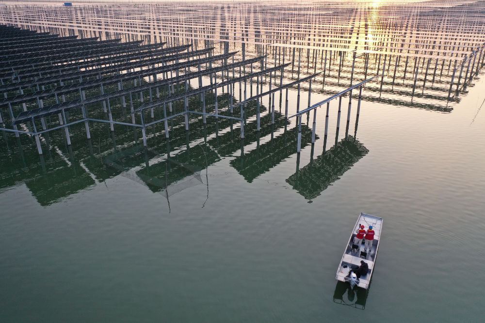 江苏宿迁天岗湖,国网宿迁供电公司员工走进光伏基地检查发电上网设备(2月15日摄)。新华社发(王松竹摄)