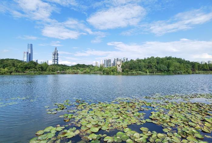 湖面清澈宽阔,荷花竞相绽放,白鹭恣意欢鸣……在占地约5000亩的观山湖公园里,这只是其中一角。