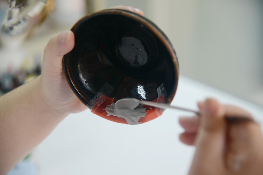 一件出水瓷盏因缺口在接受修复。新华社记者 李昊泽 摄