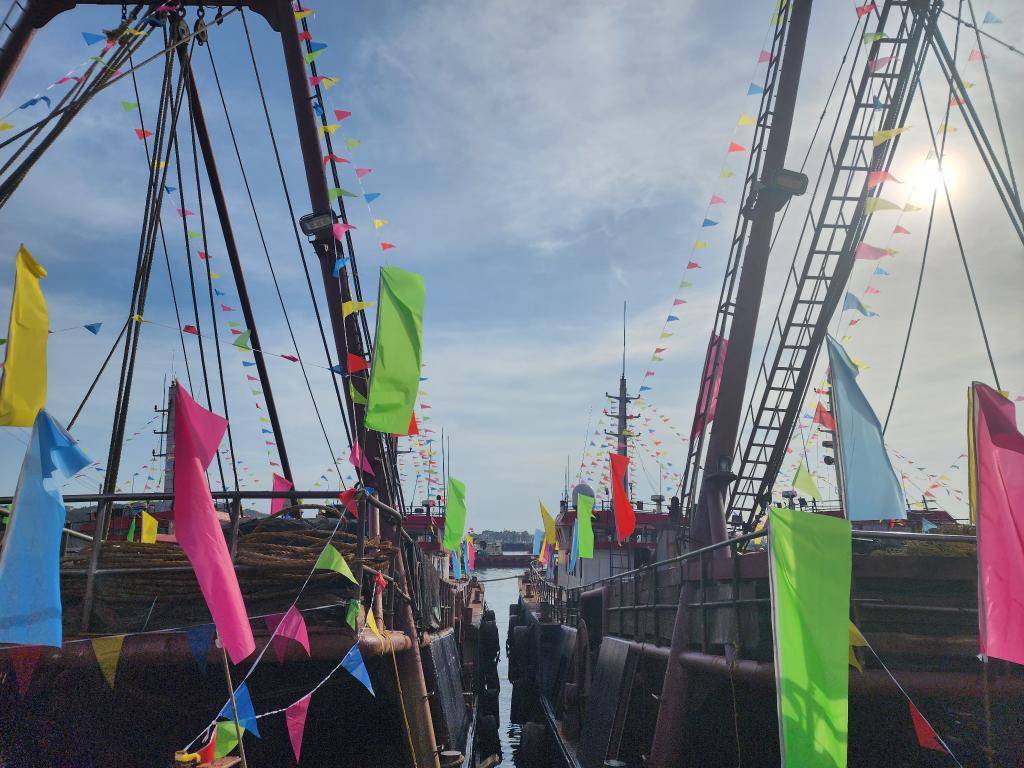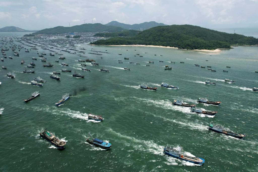 8月15日,开渔前夕,等待出海的渔船。新华社记者 欧阳建嘉 摄