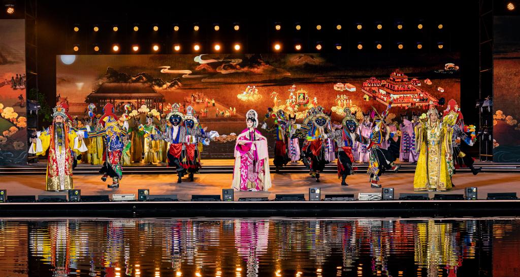 8月16日,在2023拉萨雪顿节开幕式文艺演出上,京剧藏戏《文成公主》上演。新华社记者 丁增尼达 摄