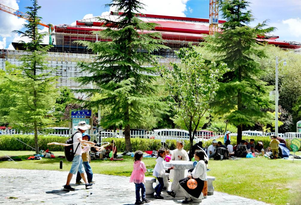 雪顿节期间,西藏各个景点游人如织、热闹非常。拉萨市民准备好毯子和小吃,到罗布林卡“过林卡”。园林内,既有小桥流水,也有恢弘建筑,雪顿节期间更有持续不断的藏戏表演。