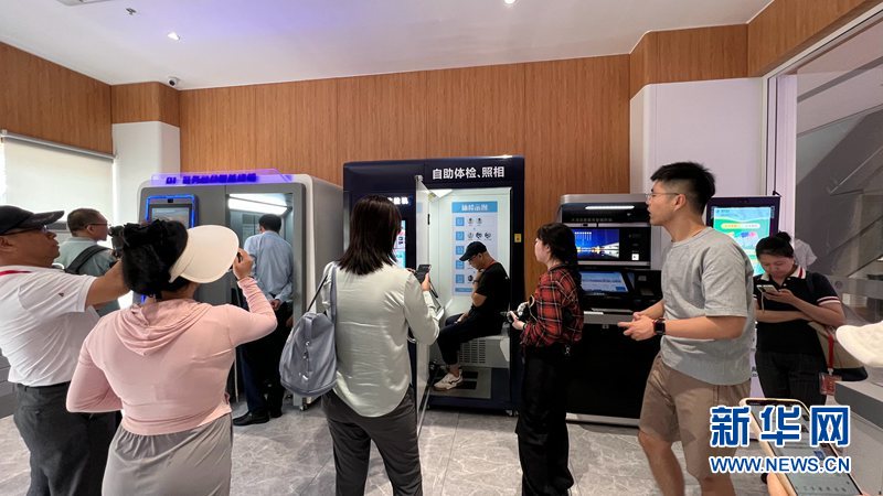 图为采访团在天开高教科创园体验自助体检设备。新华网 贾凯淇 摄