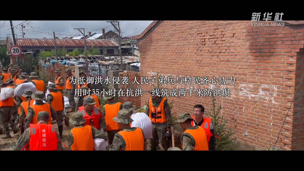 8月初,龙江大地多条河流超警戒水位。为抵御洪水侵袭。人民子弟兵与村民齐心协力,用时35小时在抗洪一线筑成两千米防洪坝。
