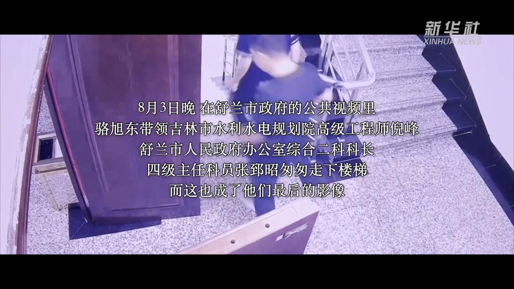 8月3日晚,骆旭东带领吉林市水利水电规划院高级工程师倪峰,舒兰市人民政府办公室综合二科科长、四级主任科员张郅昭匆匆走下楼梯。而这也成了他们最后的影像。