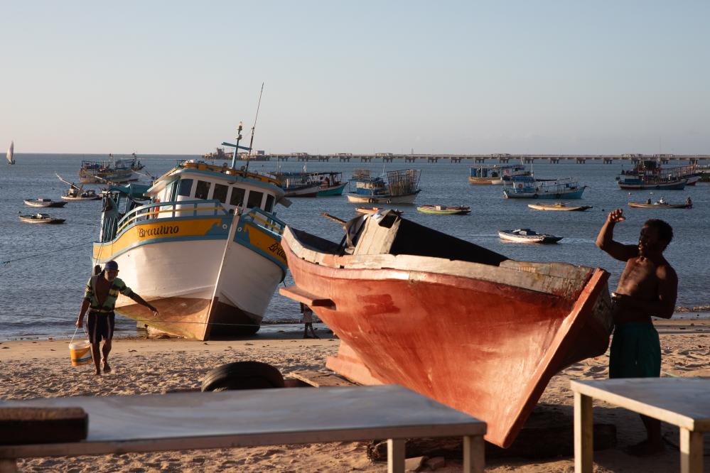 这是8月8日在巴西福塔莱萨拍摄的渔船和渔民。新华社记者王天聪摄