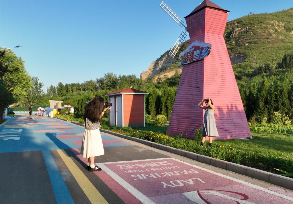 游客在岸下村“爱情公路”上拍照游玩。(翟磊摄)