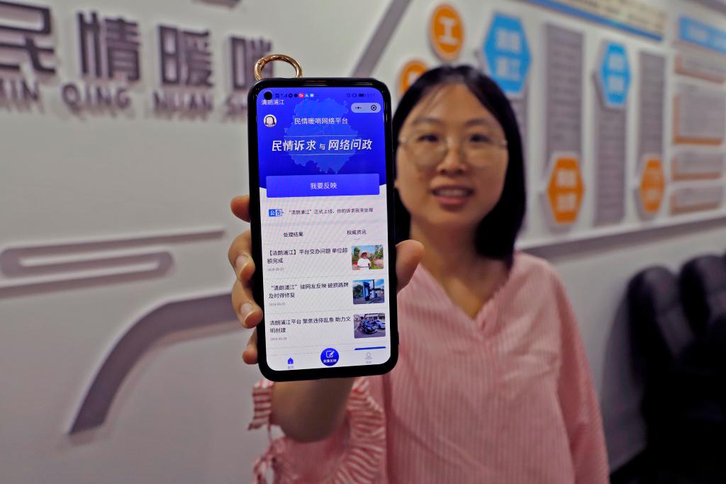 浦江市民通过“民情暖哨”网络平台反映诉求并进行平台首页展示。(方黎晨 摄)