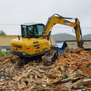 为加快推进灾后房屋重建工作,舒兰市灾后重建指挥部调遣多台大型机械设备,对已征求过农户意愿需要拆除的危房及时清拆。