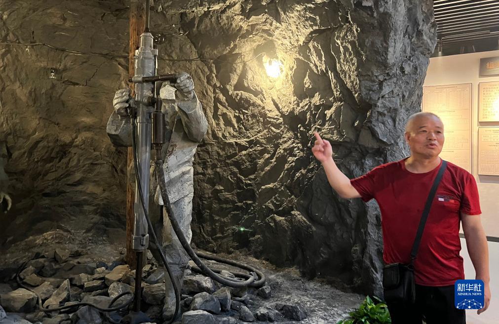 8月22日,一名退休矿工在七一一矿工业文化实践教学基地内参观。新华社记者 张格 摄