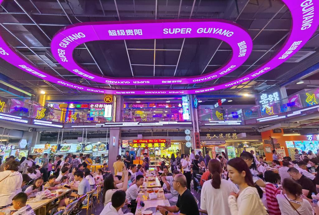 8月1日,市民和游客在贵阳市“青云市集”餐饮区就餐。新华社记者齐健 摄