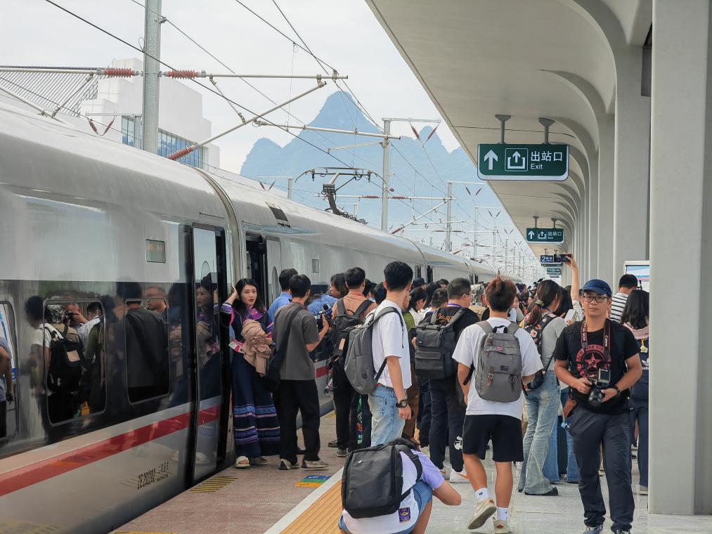 8月31日,G4308次列车抵达广西河池环江站。新华社记者 赵欢 摄
