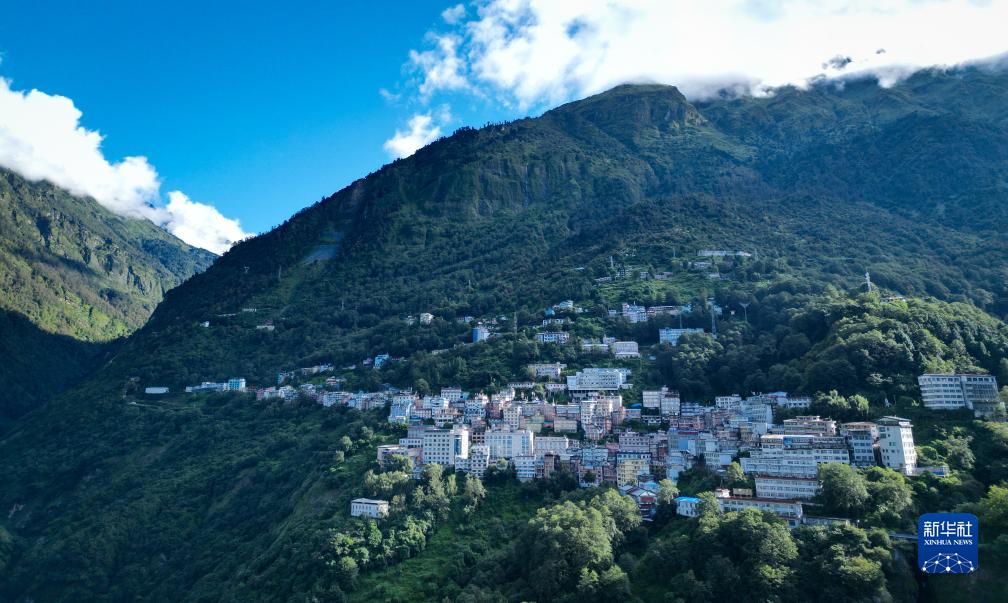 这是9月1日拍摄的西藏日喀则市聂拉木县樟木镇(无人机照片)。当日,西藏樟木口岸时隔8年后恢复双向人员往来。聂拉木出入境边防检查站统计数据显示,恢复当日,樟木口岸通关出入境人数达752人次。樟木口岸位于西藏自治区日喀则市聂拉木县,2015年受尼泊尔地震影响,樟木口岸一度关闭,在2019年恢复货运通道功能。新华社记者 聂毅 摄