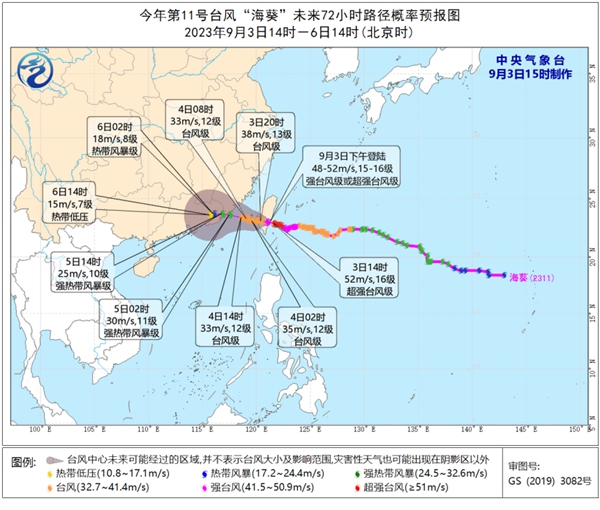 今天(9月3日)15时30分,今年第11号台风“海葵”以强台风级别登陆台湾台东市沿海。预计登陆后,“海葵”将继续西行,并于5日下午至夜间在我国粤闽沿海完成二次登陆,上述地区将经历长时间的风雨影响,需提前做好防台风部署。