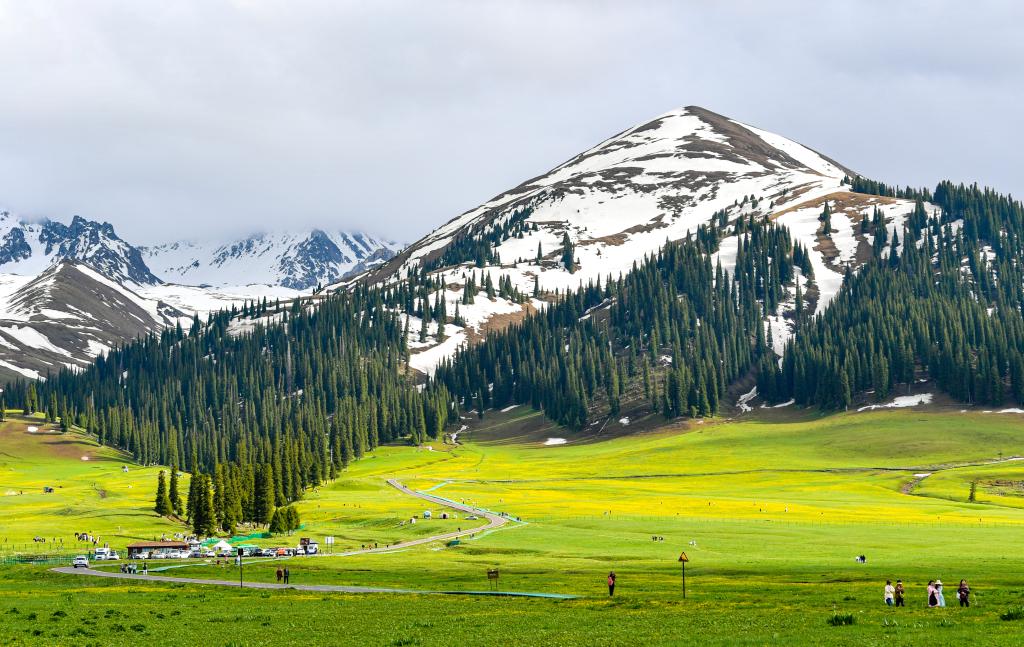 游客在位于新疆新源县的那拉提旅游风景区观光(2023年5月19日摄)。新华社记者 王菲 摄