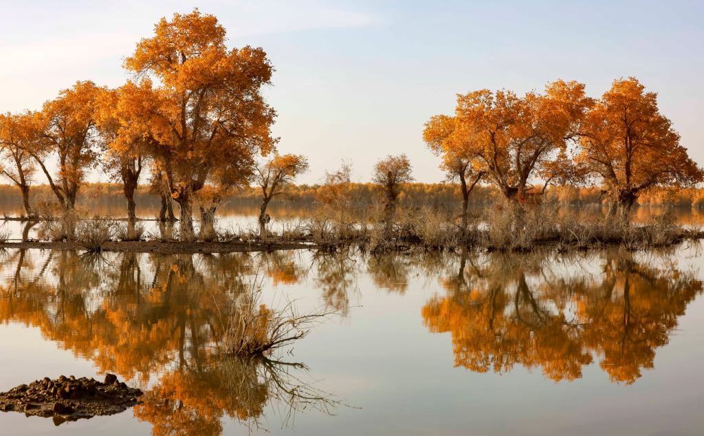 这是2022年10月28日在新疆沙雅县沙雁洲景区拍摄的胡杨林景观。新华社发(柳玉柱 摄)