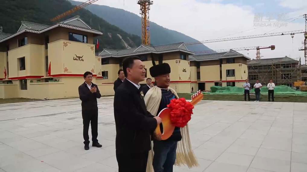 在“9·5”泸定地震一周年之际,四川省甘孜藏族自治州泸定县磨西镇幸福新村的部分居民领到新家的钥匙,他们即将在这里开启新生活。