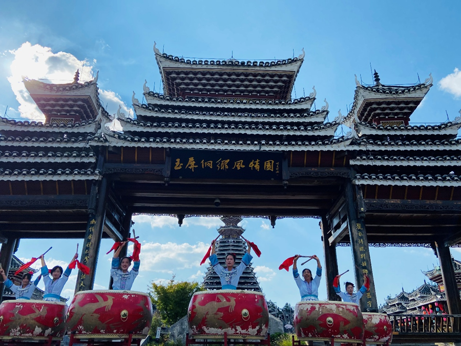 9月5日,“多彩民族有多彩”网络主题活动采访团走进位于贵州省铜仁市玉屏侗族自治县的玉屏侗乡风情园,参观了鼓楼广场、乡愁馆等主要景点,近距离感受民族特色文化。据了解,玉屏侗乡风情园依山而建、临水而居,以 “金色侗乡、康养玉屏”为发展目标,打造西南地区的康养旅游胜地。