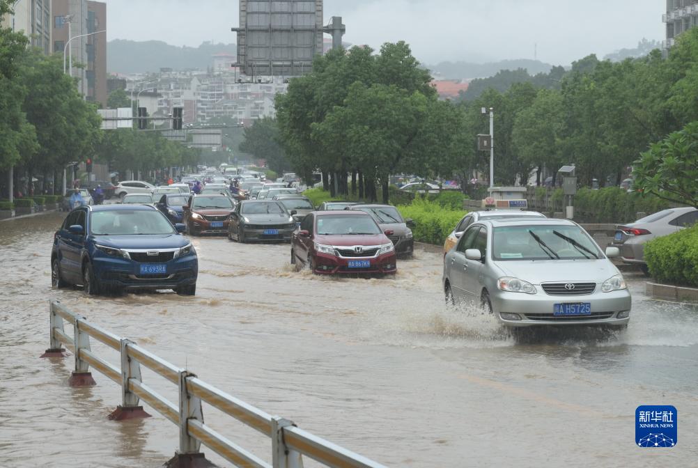 这是9月6日拍摄的福州主城区一处道路积水情况。新华社记者 林善传 摄
