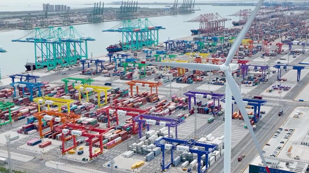 如今,轮毂高110米的风力发电机组已成为“智慧零碳”码头最显著的标志。“风光储荷一体化”系统持续为码头提供可用清洁能源。